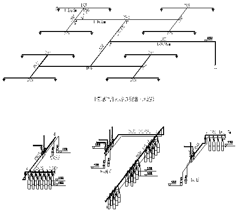 維持防護區不變,對兩個防護區采用組合分配系統,每個防護區內吊頂、空間、地板三個封閉空間采用各自獨立系統;空間層由于防護范圍較大,分四路管道兩個獨立系統進行保護,空間層管道為不均衡管網布置,管道均采用鍍鋅無縫鋼管。防護區管道示意圖如下頁: