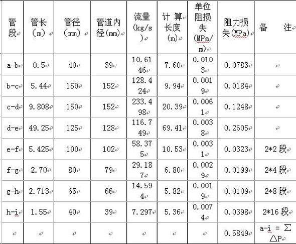 吊頂層系統管道阻力損失計算結果